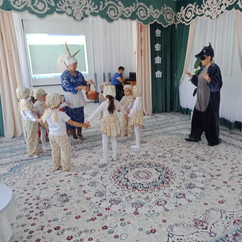 09 сәуір 2021 0 1 2 3 4 5 Жеті лақ "Балақай" кезекші тобының тәрбиеленушілері "Жеті лақ" ертегісін сахналауда