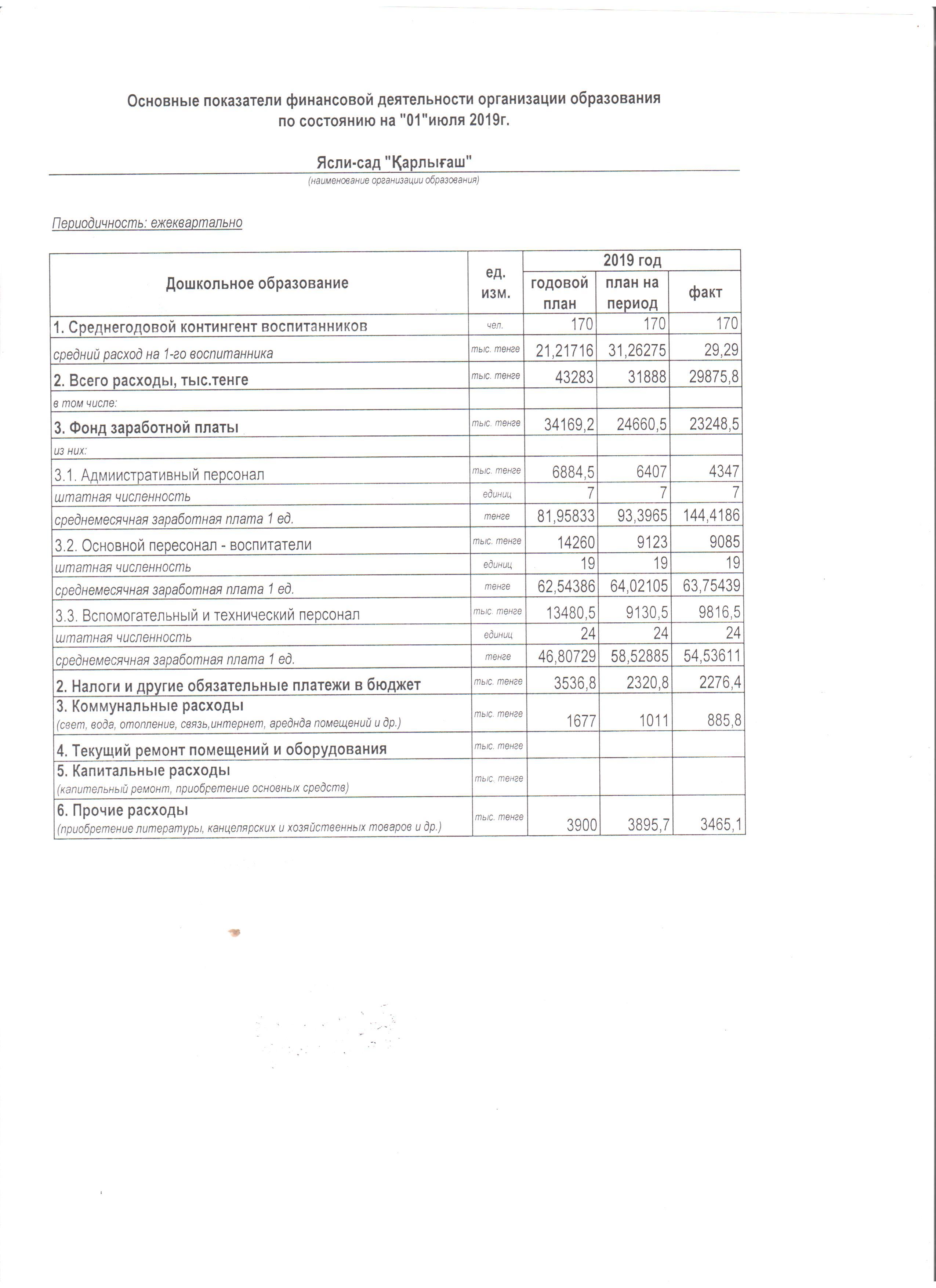 2019 жылдың 1 тоқсандық қаржыландыру жоспары